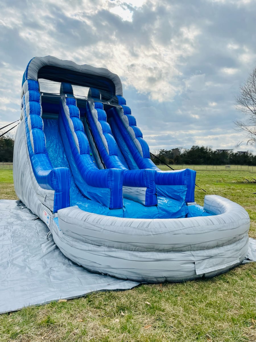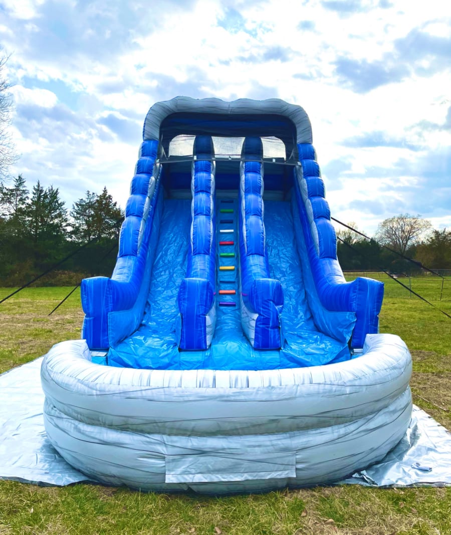 The Rockin' Wave water slide is 30X13X20 and can accommodate 4 participants at a time or up to 1200 lbs. We will set up the morning of your event and break it down at pickup. Take advantage of our free 20 mile delivery range! We service Murfreesboro, Lascassas, Walter Hill, Smyrna, LaVergne, Nolensville, Lebanon, and Mt Juliet areas. Don't worry if you don't see your delivery area, feel free to reach out to us through call or text @ 615-995-1757, email at leapfroginflatablesTN@gmail.com, or through our Facebook page @leapfroginflatables and see if we service your area.
